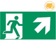 Langnachleuchtende ALU-Rettungsschilder NSK Pfeil nach oben rechts für Rettungswege und Notausgänge gemäß ISO 7010. Masse: L x H 300 x 150 mm